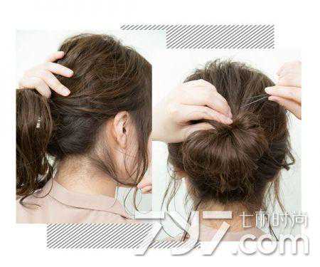 第三步:用手稍稍拉扯一下发髻,这样就可以完成这款好看的盘发造型啦。