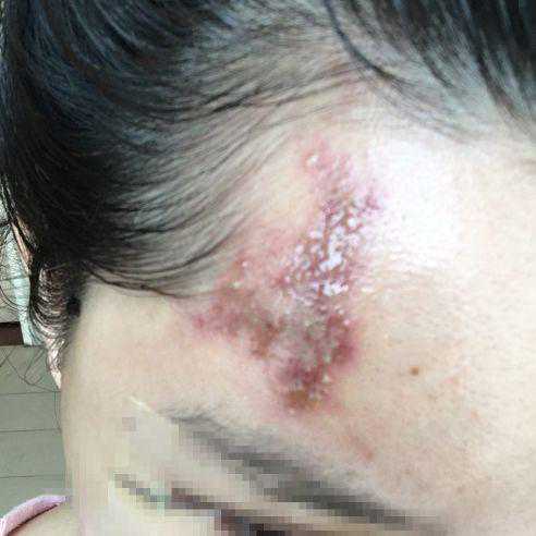 没办法,韦女士只好住院治疗,可是两天后,她的右脸额头又出现了皮肤溃烂、坏死的症状。